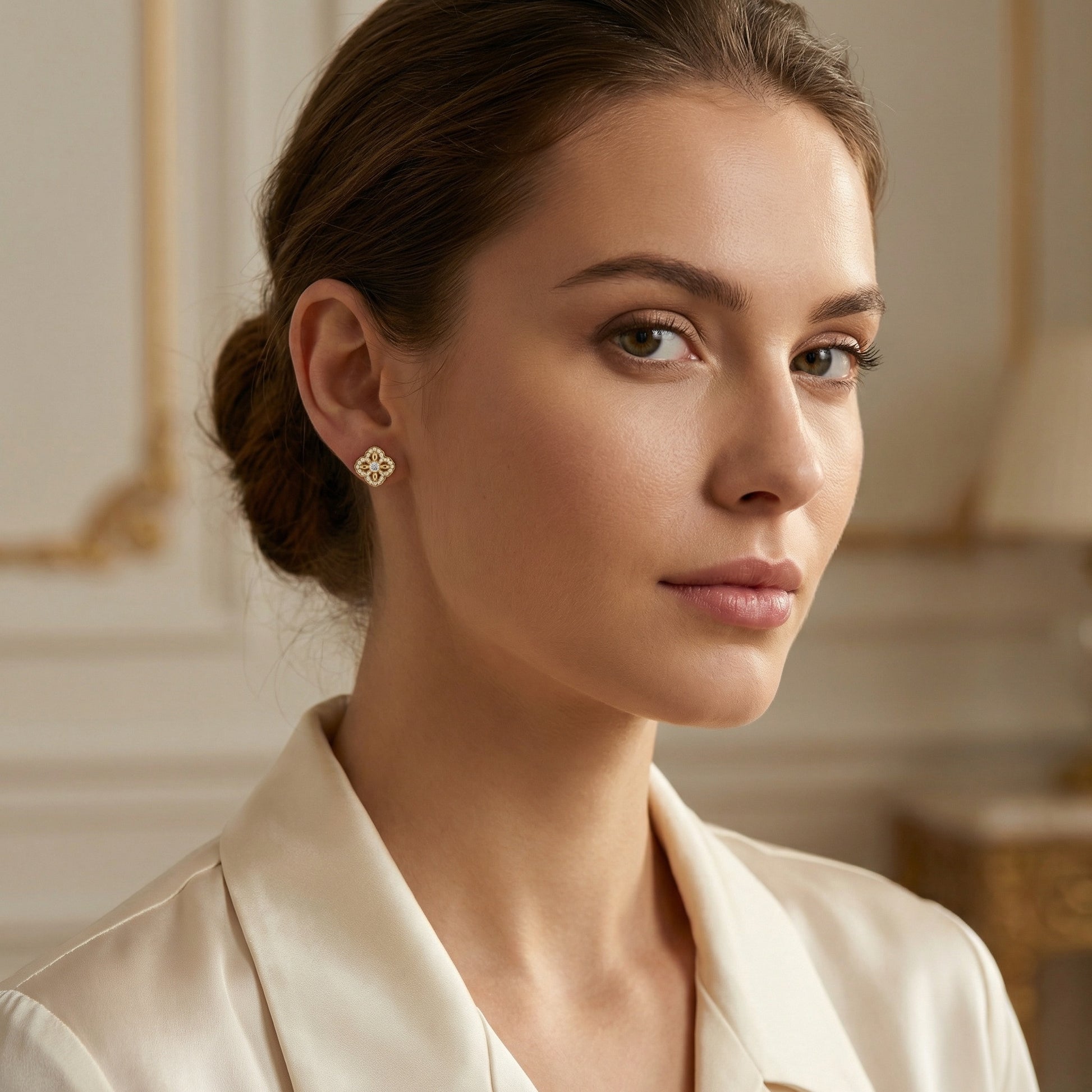 925 Sterling Silver Elegant Quatrefoil Diamond Stud Earrings
